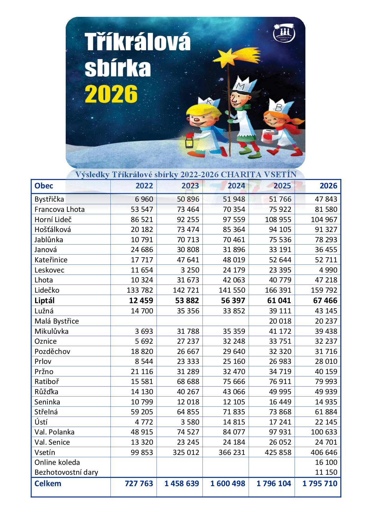 Výsledky Tříkrálové sbírky 20262