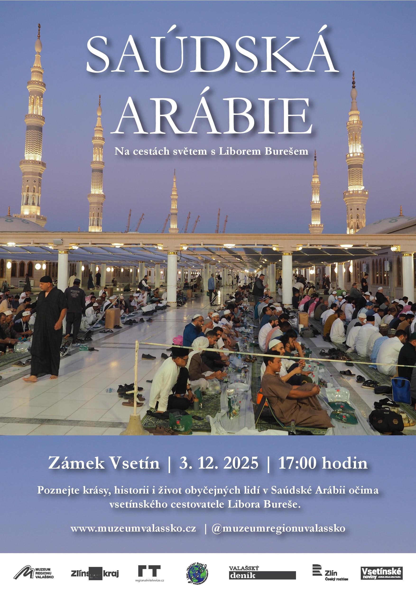 Výpravou do kolébky Islámu, která se stala díky ropě jednou z nejbohatších zemí světa – kráslovství Saúdská Arábie – zakončíme letošní cyklus přednášek s oblíbeným cestovatelem Liborem Burešem. Akce proběhne ve středu 3. prosince od 17:00 hodin v Mramorovém sále zámku Vsetín. Jako vždy Vás čeká spousta zážitků, krásných fotografií i zajímavých cestovatelských tipů. Více na https://www.muzeumvalassko.cz/akce-a-vystavy/saudska-arabie-na-cestach-svetem-s-liborem-buresem