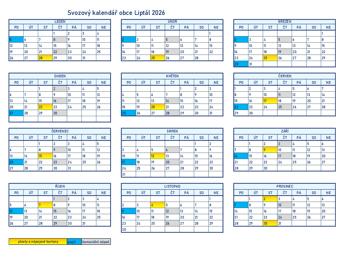 Od 1. 1. 2026 se mění výše poplatku za obecní systém odpadového hospodářství. Splatnost je každoročně do konce března. Platbu lze učinit hotově nebo kartou v informačním centru, na obecním úřadě, nebo přímo na účet obce 6724851/0100, variabilní symbol: 1340 a číslo popisné/evidenční objektu.