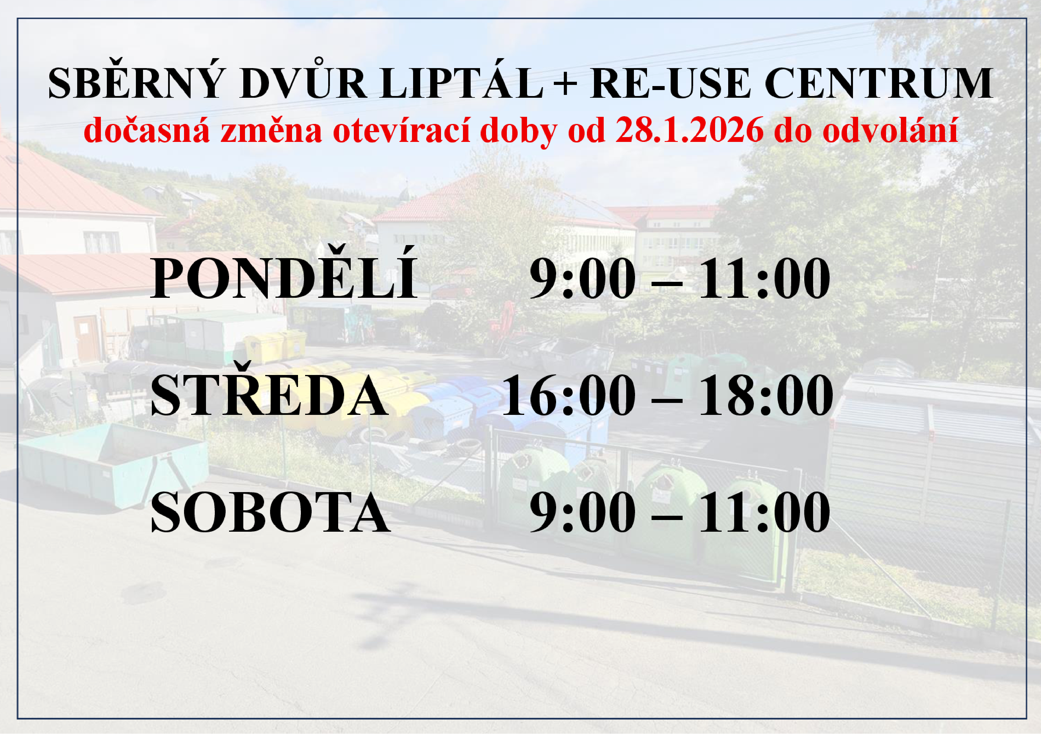 SBĚRNÝ DVŮR LIPTÁL + RE-USE CENTRUM - dočasná změna otevírací doby od 28.1.2026 do odvolání