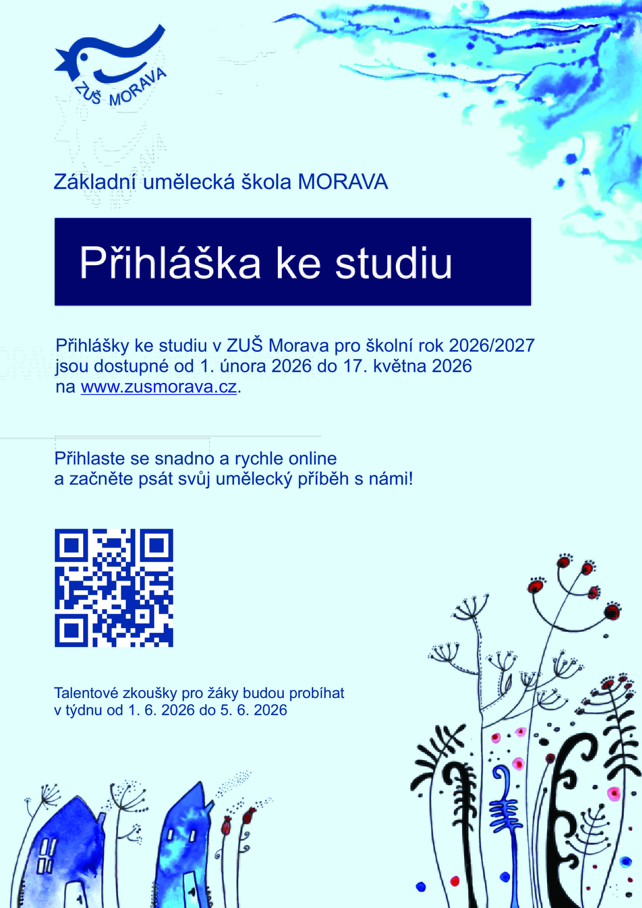 ZUŠ Morava - přihlášky ke studiu pro školní rok 2026/2027